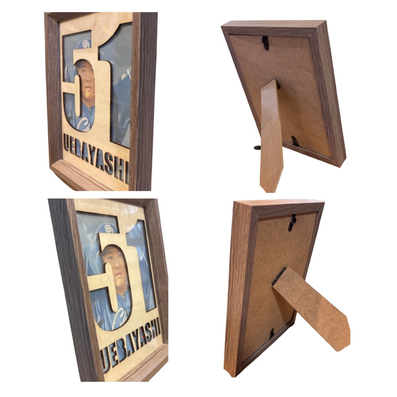 お気に入りの選手の名前と背番号をレーザーカットした、オリジナル木製フォトフレームです。
