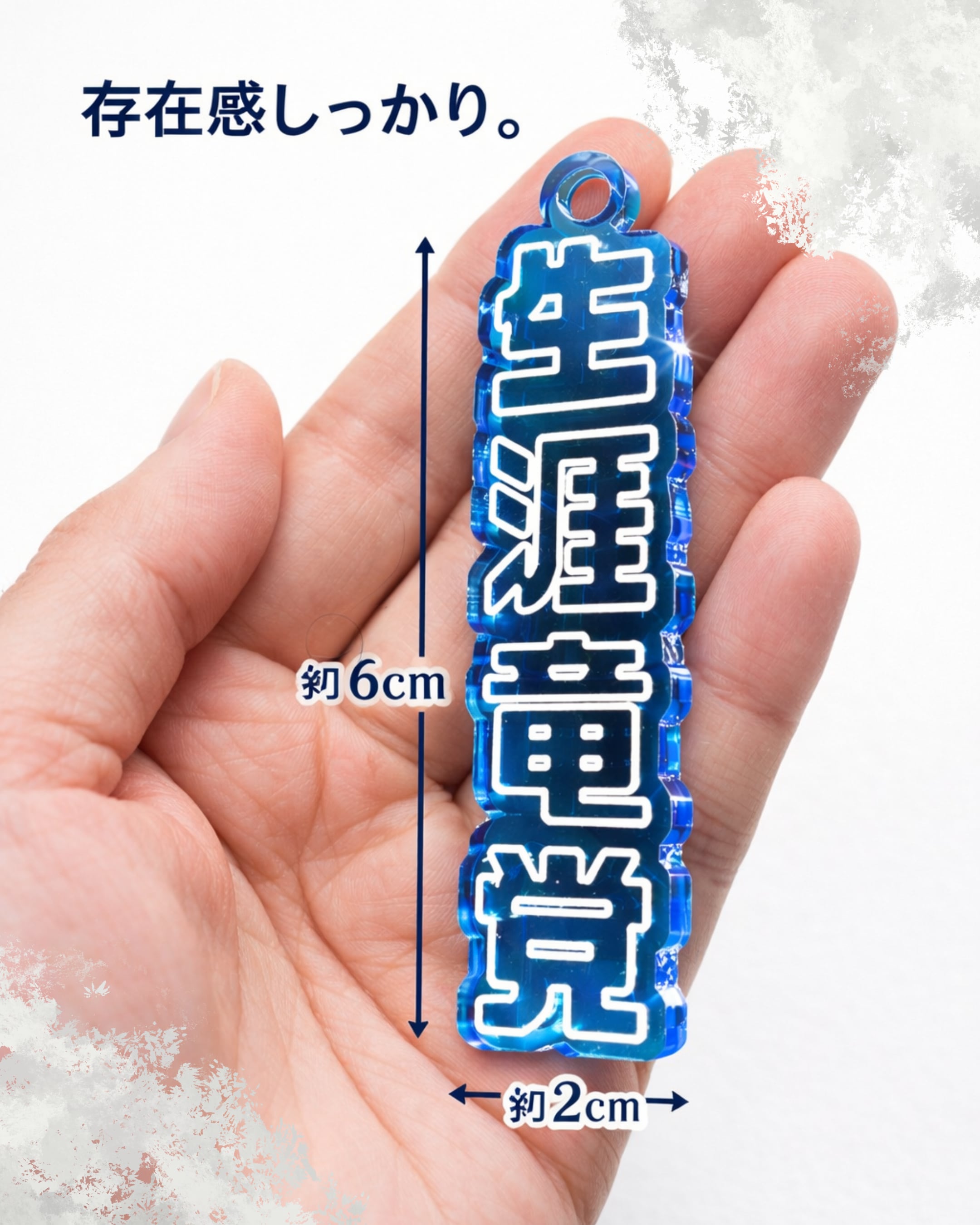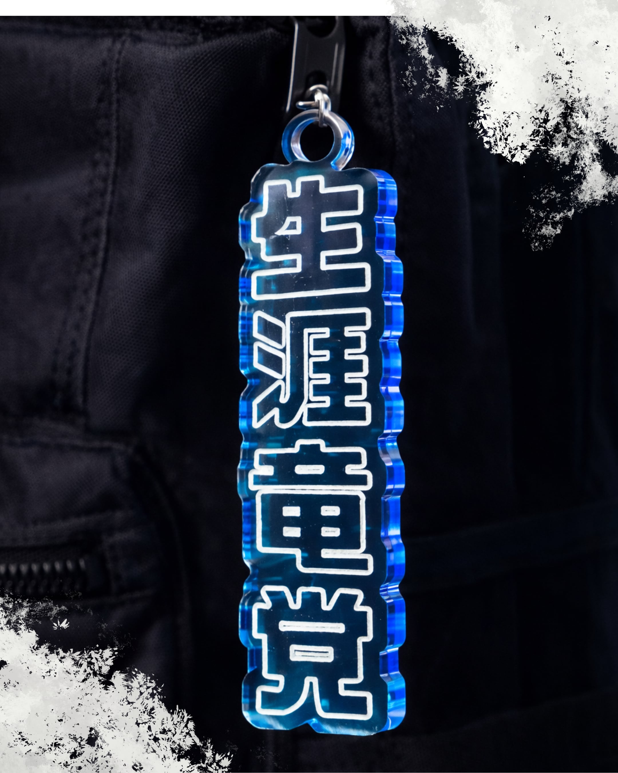 「生涯竜党」の文字をデザインしたアクリルキーホルダーです。
