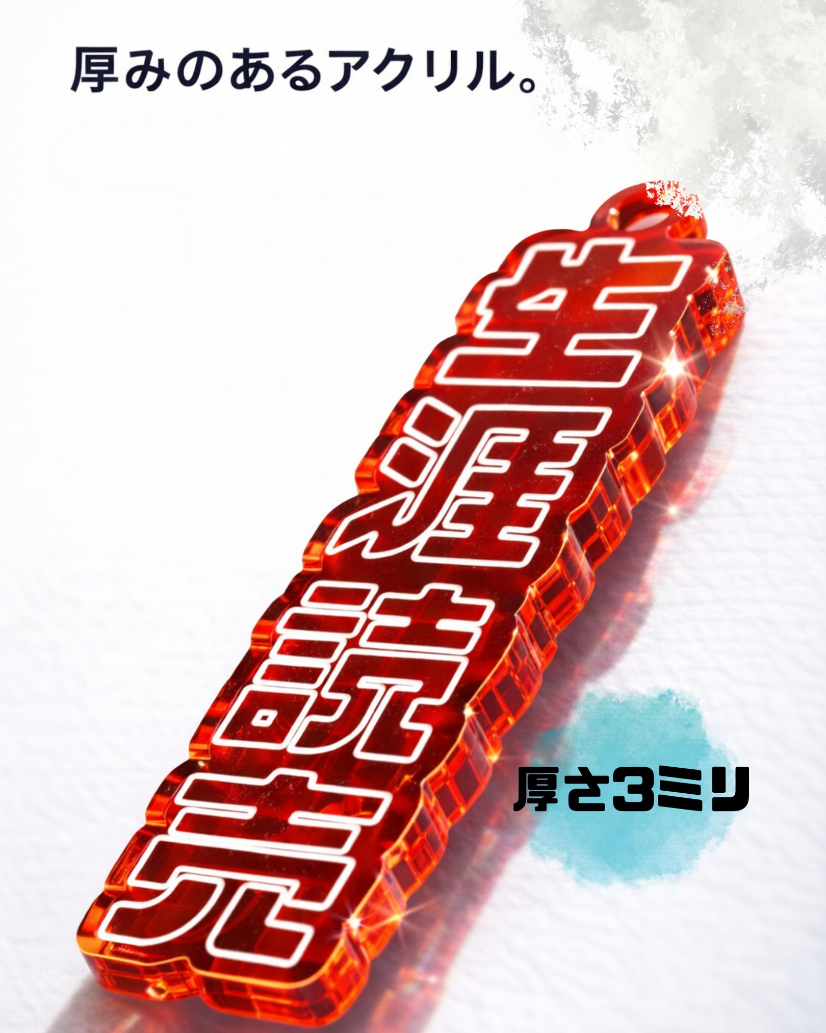 「最後は巨人が勝つ。」 そんな強い信念を持ち、どんな時もジャイアンツと共に歩み続ける熱狂的なファンの皆さまに捧げるのが、この「生涯読売」アクリルキーホルダーです。