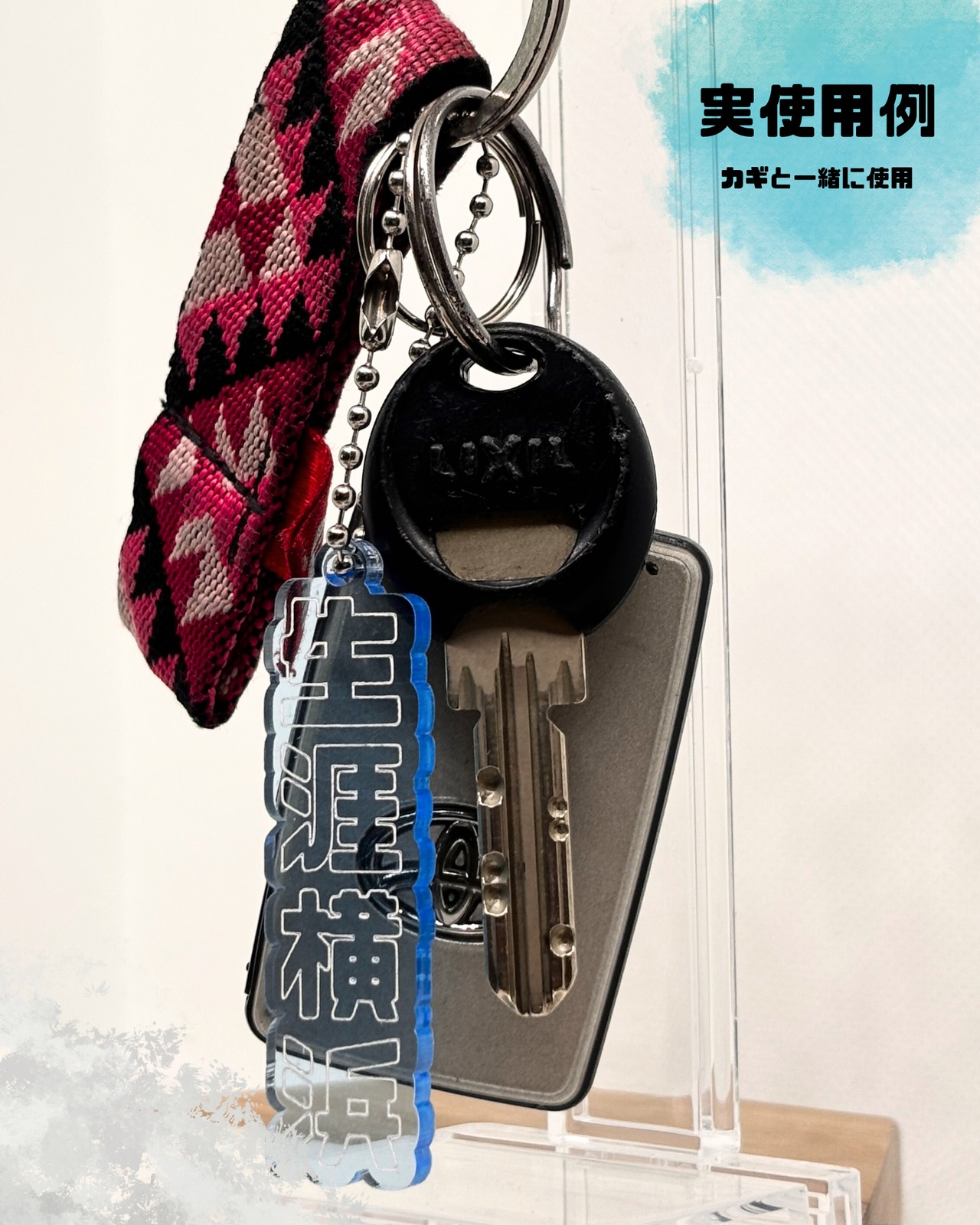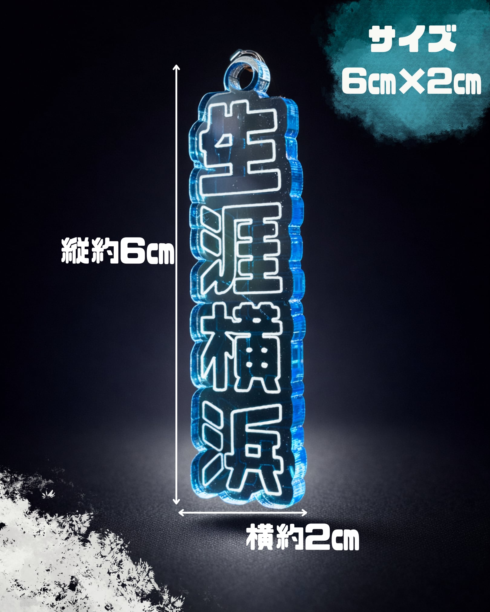 手に取った瞬間に伝わる、しっかりとした厚み。縦長のフォルムはどんなアイテムにも品よく馴染みます。高品質なアクリル素材を使用しているため、ハマスタへの遠征や日々の通勤・通学など、あらゆるシーンでタフにあなたに寄り添います。