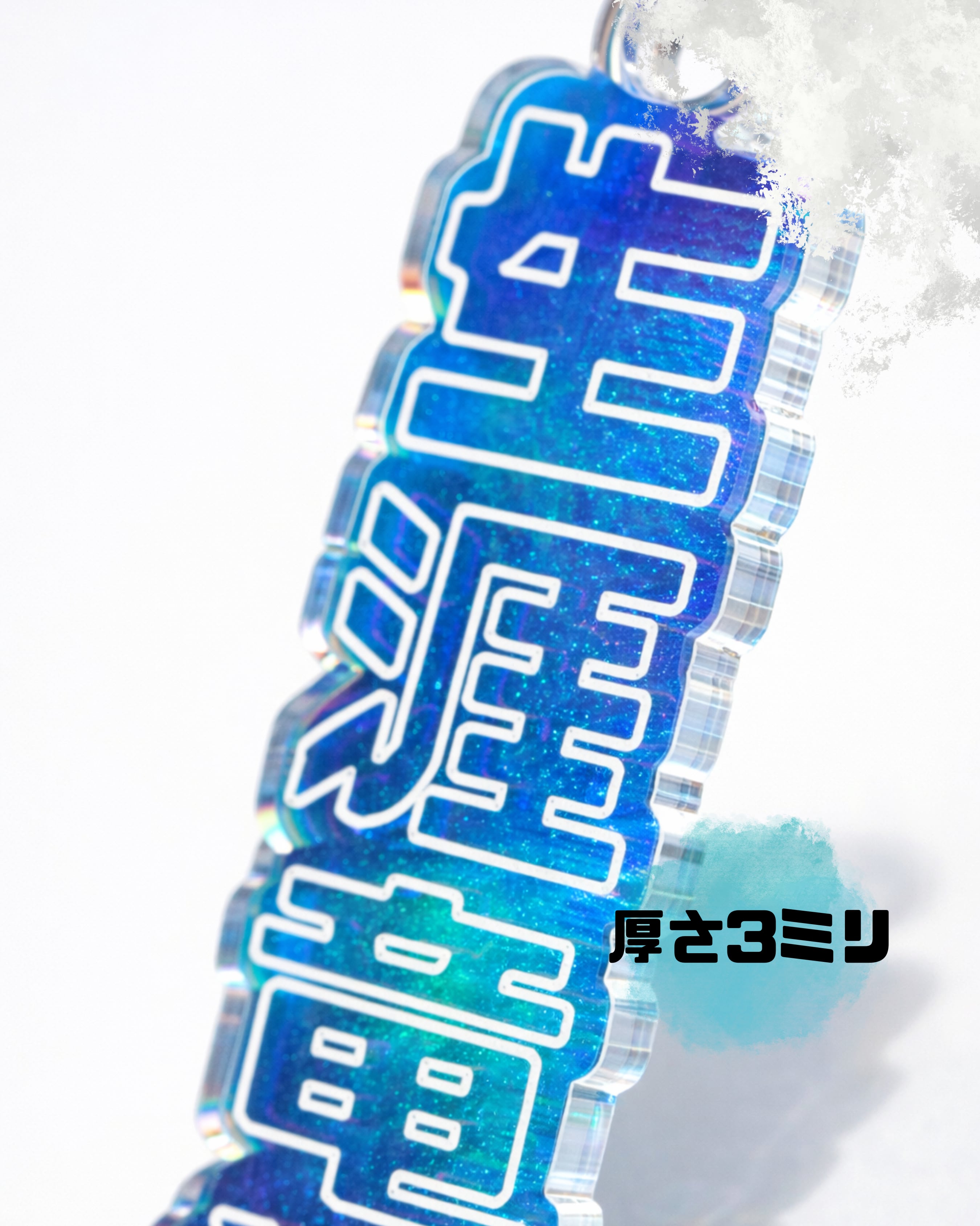 虹色の輝きの中に、凛とした「白」で刻印された文字。 これは、どんな時もブレないファンの「純粋な応援の心」を表現しています。派手になりすぎず、上品でありながら力強いデザインは、大人のファンの方にもぜひ手に取っていただきたい仕上がりです。