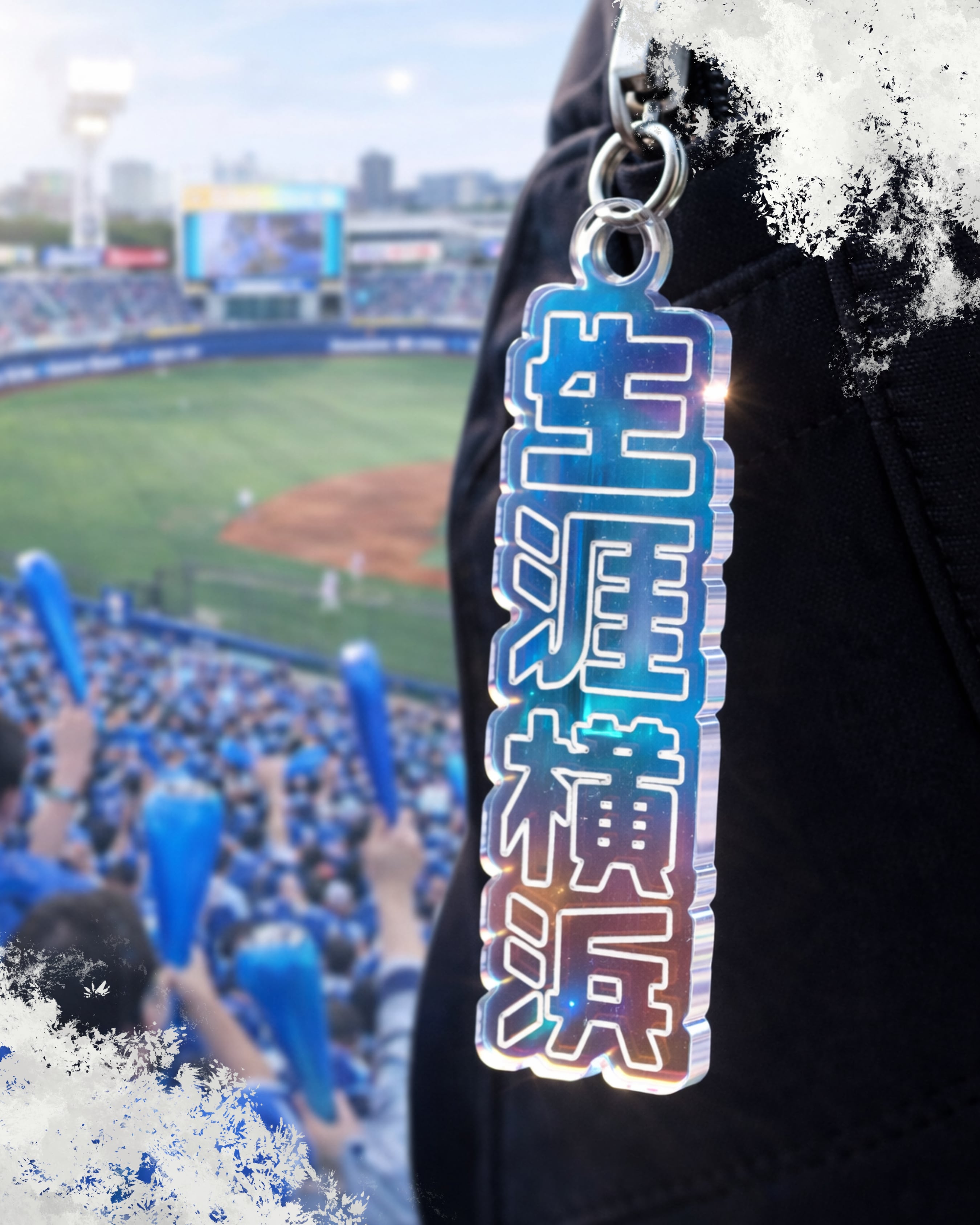 スタジアムで: 応援バッグやユニフォームのジッパーに。縦6cm×横2cmという、スタイリッシュで邪魔にならないサイズ感は、青いグッズが並ぶ中でも一際目立つ個性を放ちます。