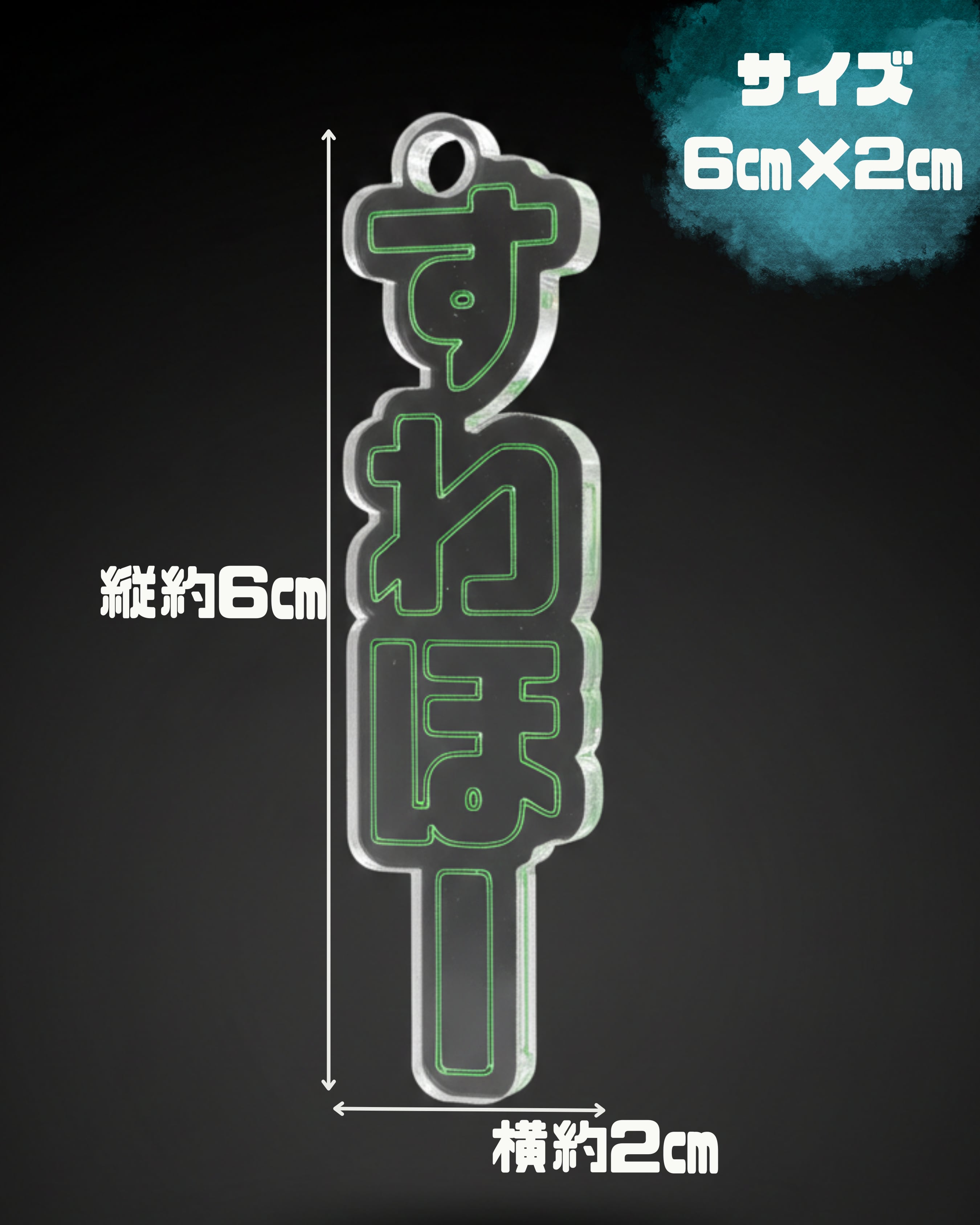 応燕」カラーのデザイン 透明感の高い高品質アクリルに、スワローズのシンボルカラーである鮮やかなグリーンの文字刻印を施しました。派手すぎないシンプルなデザインなので、毎日のバッグや小物にもさりげなく「スワローズ愛」を忍ばせることができます。