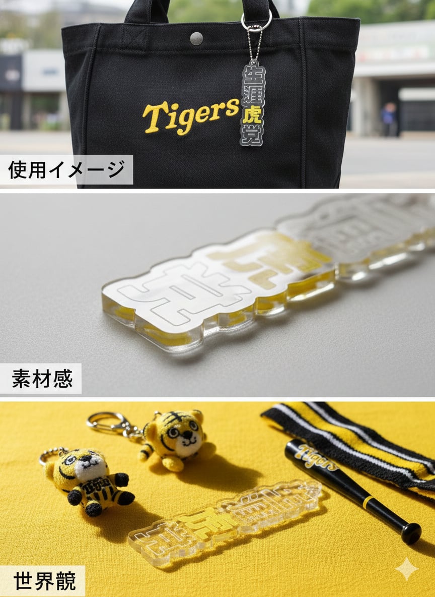日常に潜ませる虎の誇り: 普段使いのカバンや鍵に。仕事や家事で忙しい時も、この「黄色い虎」が目に入るたび、甲子園の熱狂を思い出し、次の一歩を踏み出す勇気をくれるはずです。