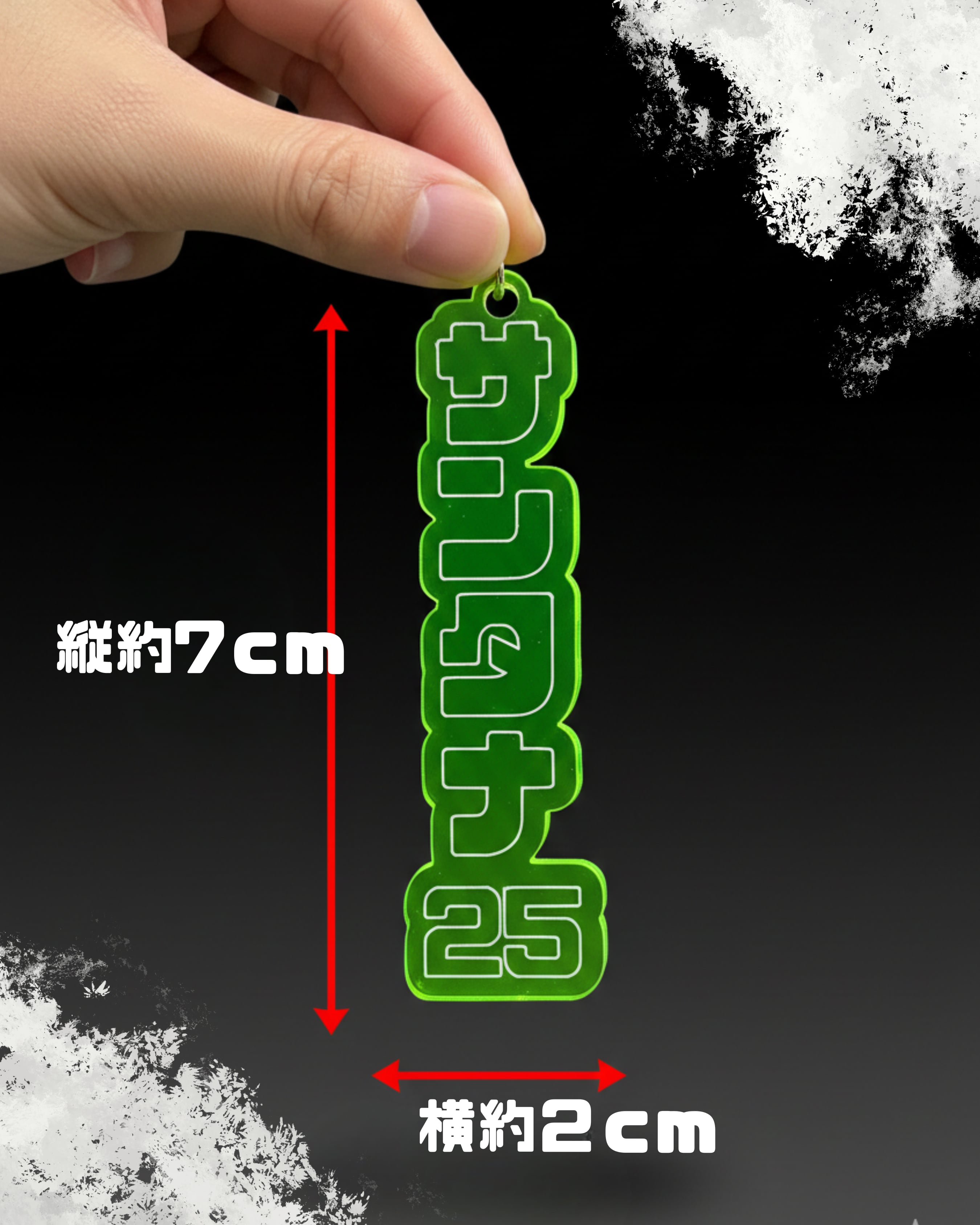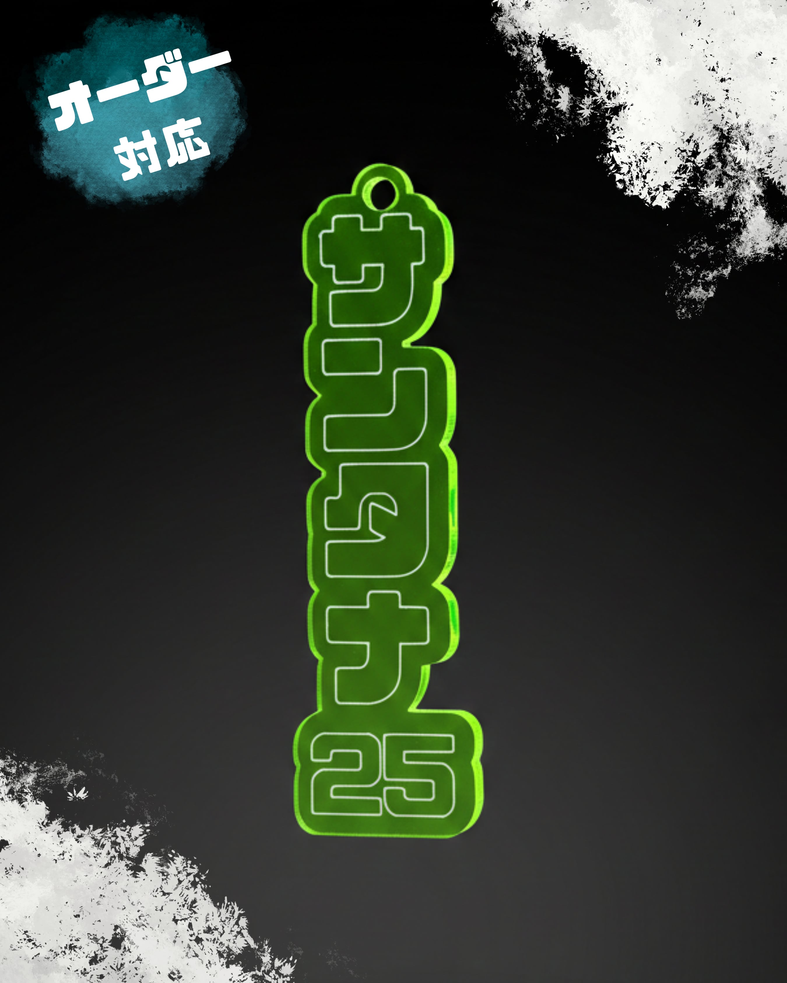 クリア’蛍光’グリーンアクリルを使用し、刻印文字は白色+背番号。