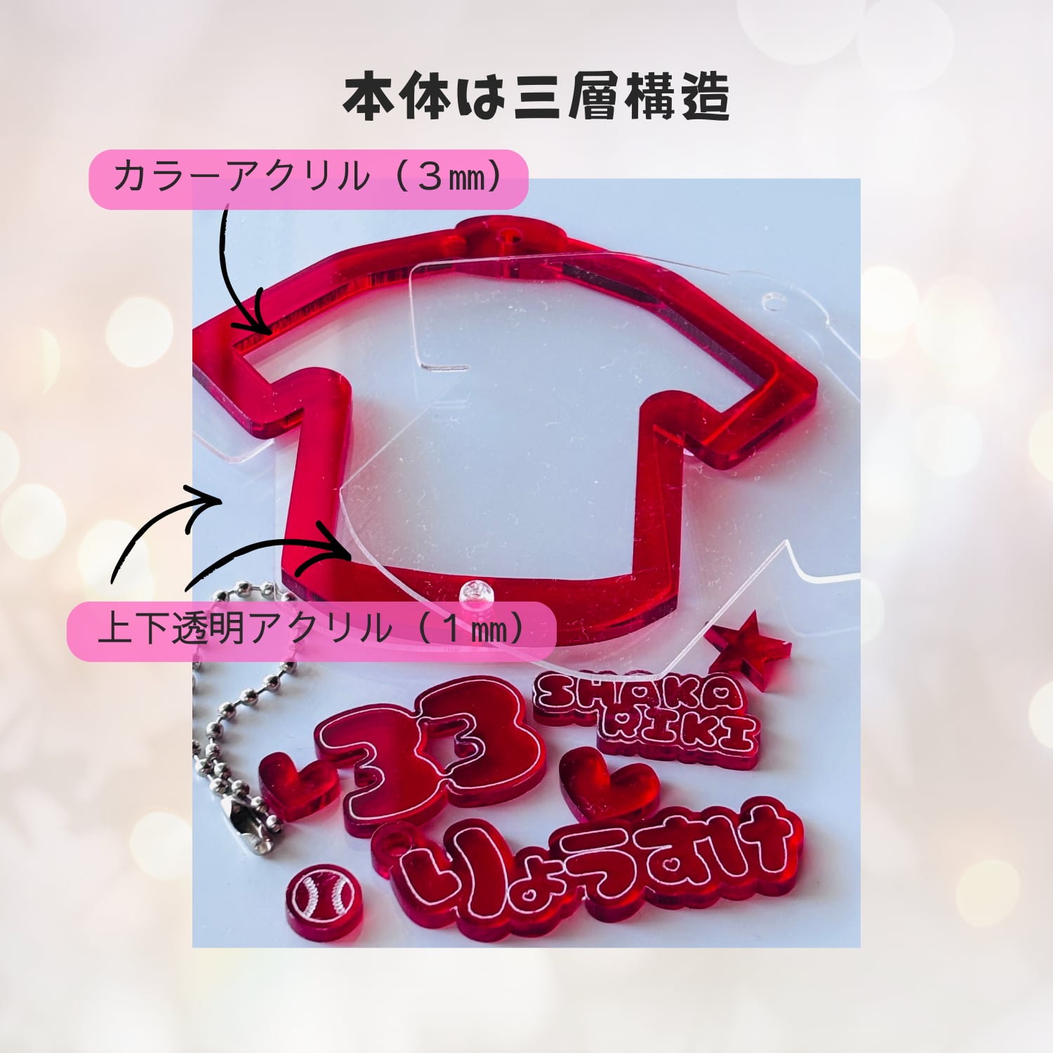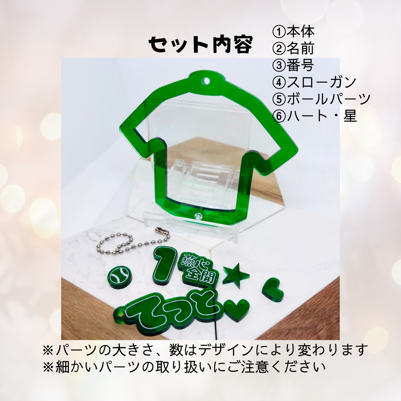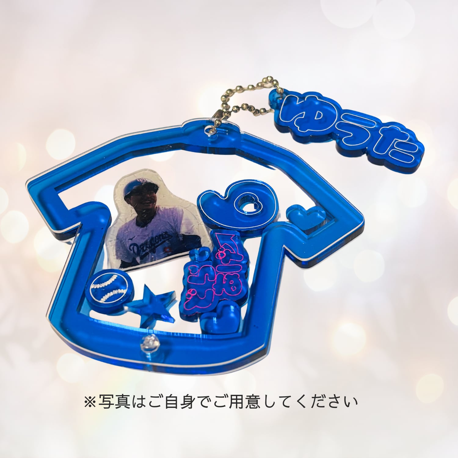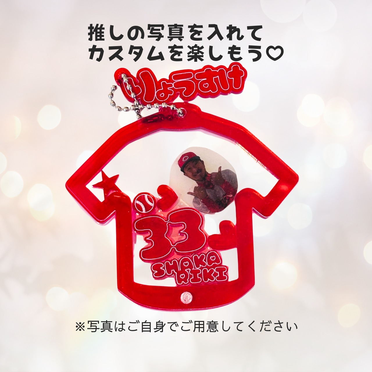 推しの選手の写真を入れて楽しめる、ユニフォーム型のアクリルキーホルダーです。