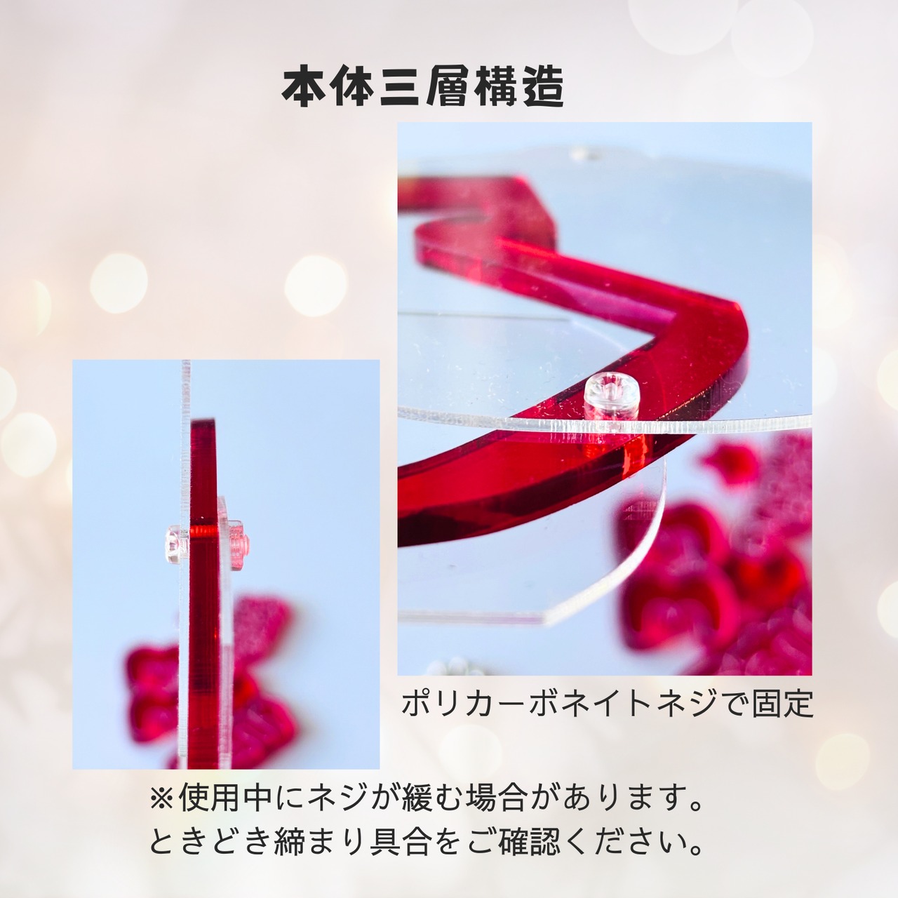 透明×カラーアクリルが光を受けて、エッジがきれいに映えます。