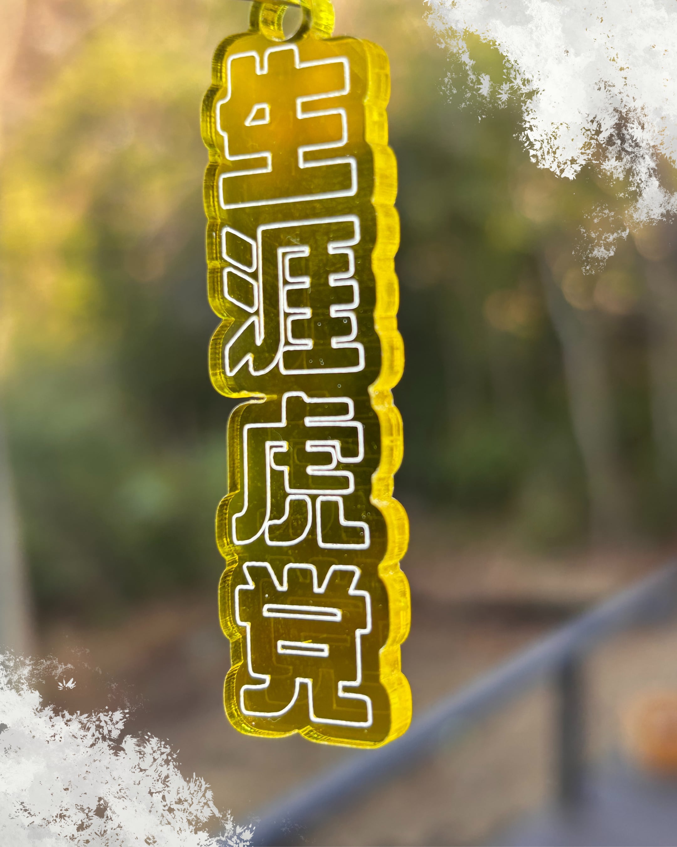 勝っても負けても、俺たちの心は常に「黄色」に染まっている。 そんな熱狂的なタイガースファンにこそ手にしていただきたいのが、この「生涯虎党」アクリルキーホルダーです。