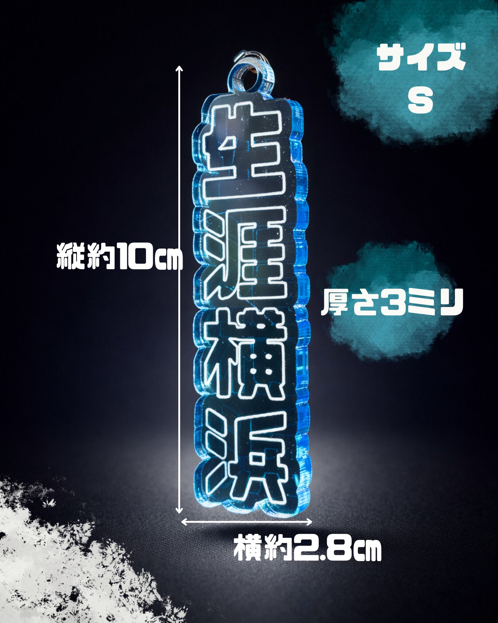 サイズ: 縦 10cm × 横 2.8cm(プレート部分) ボールチェーン付き