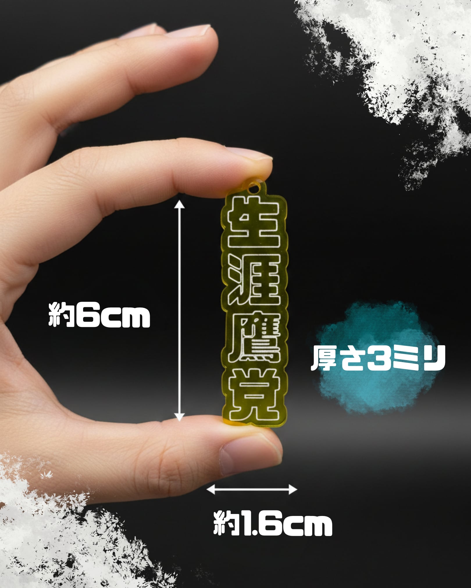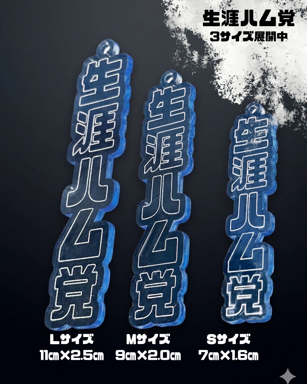 洗練された細身のシルエットが美しい、Sサイズ(6cm×1.6cm)の応援キーホルダーです。