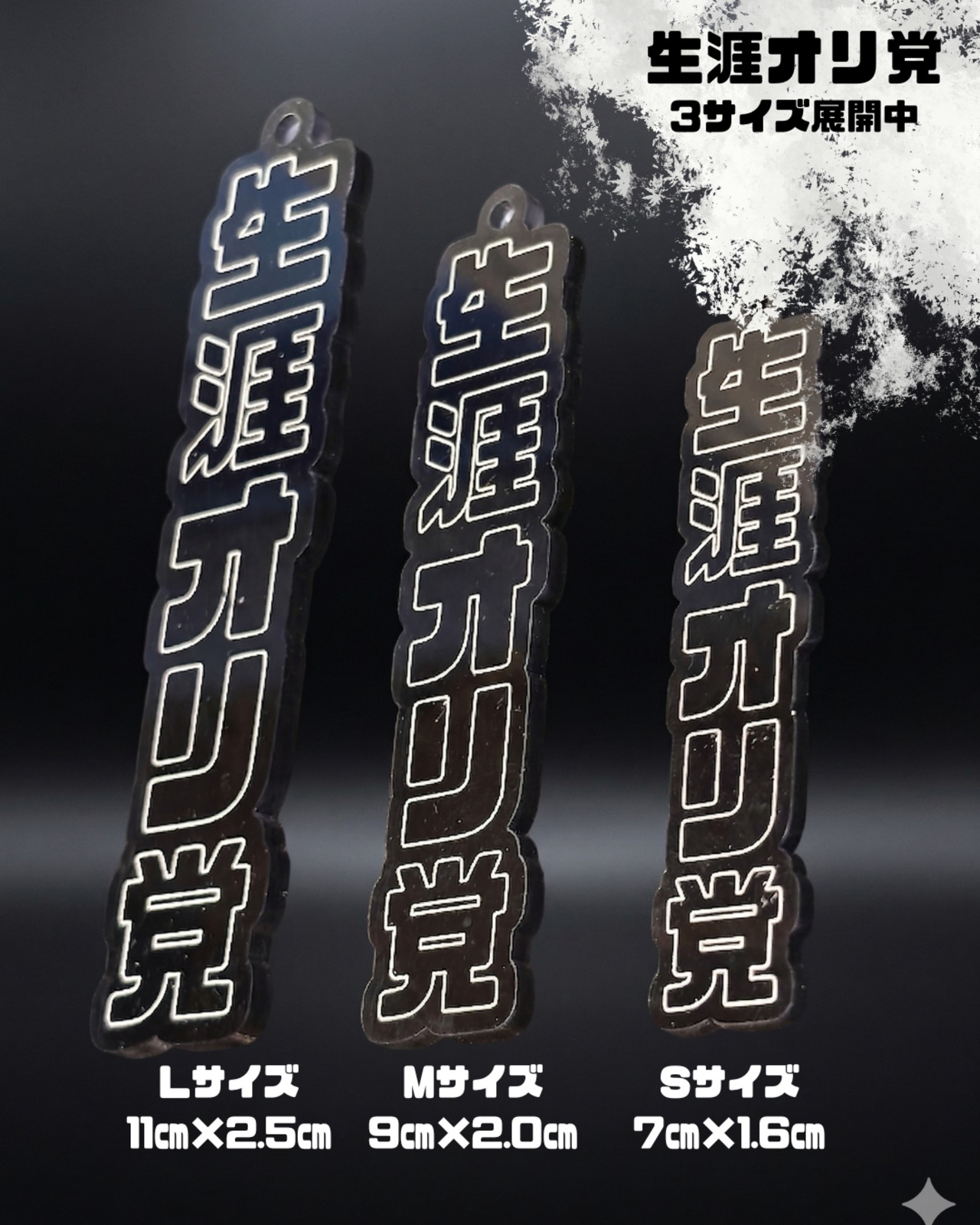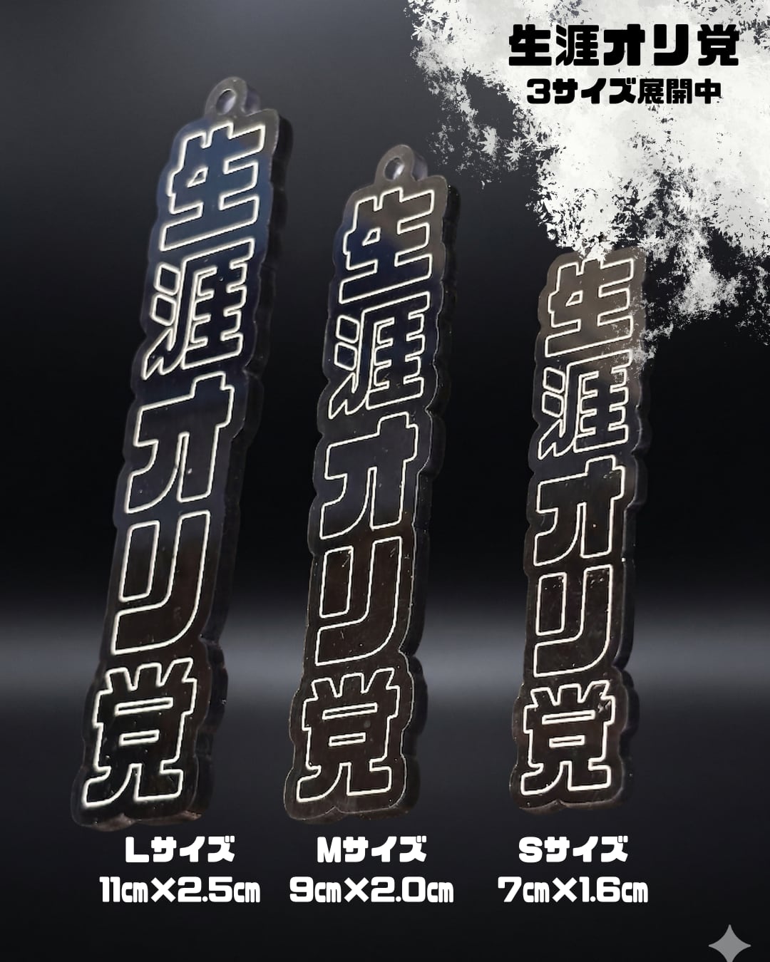 細身のプレートタイプなので、ビジネスバッグや通勤用のリュックに付けても派手すぎず、上品なアクセントに。一見するとスタイリッシュなアクセサリーでありながら、よく見ると「生涯推し」というギャップが、大人の遊び心をくすぐります。