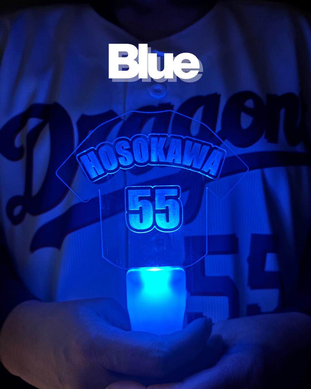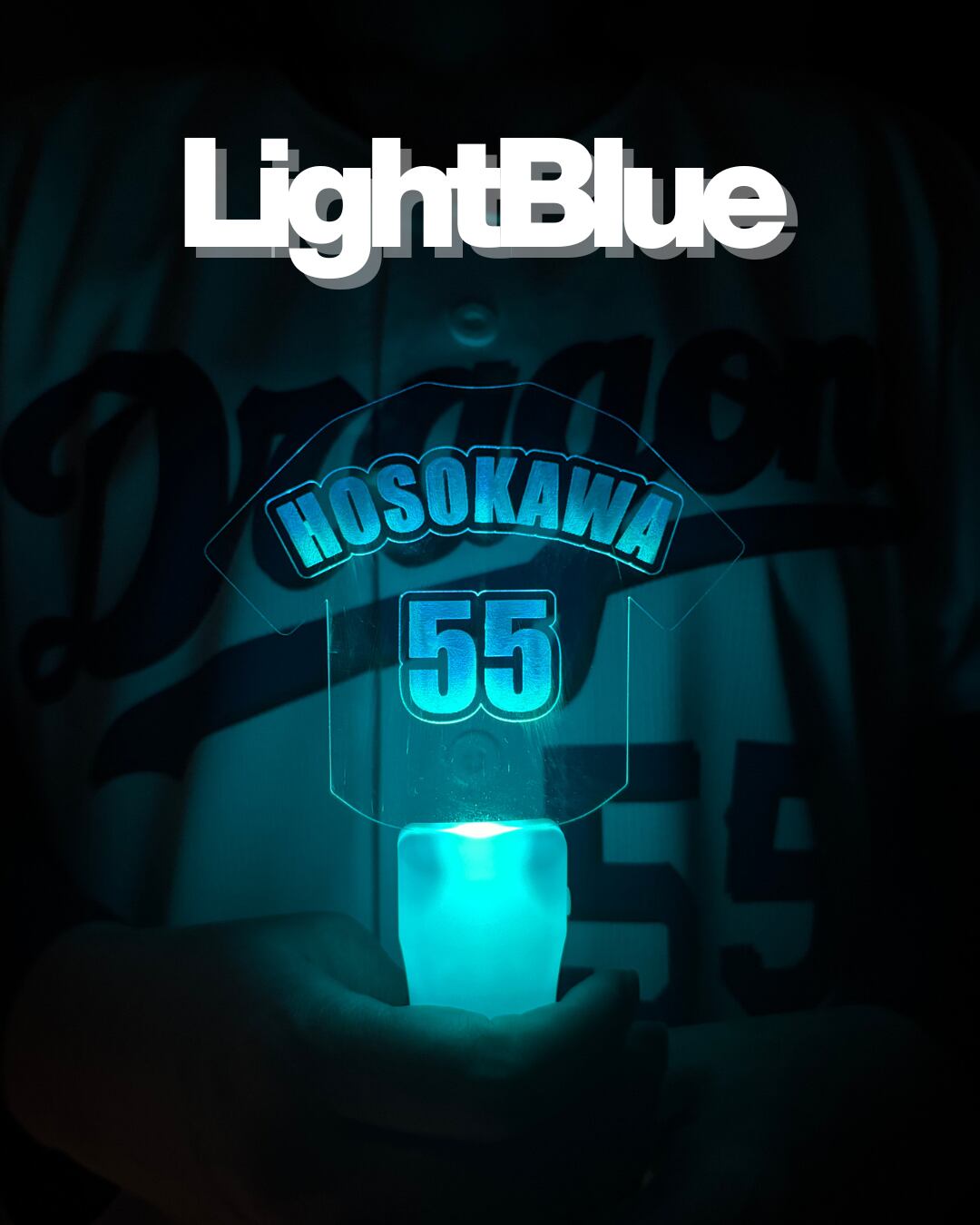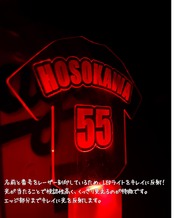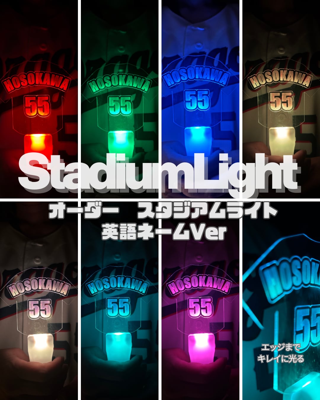 ・フルネーム刻印の圧倒的クオリティ英語ネームVer.のデザインは、まるでユニフォームがそのまま光り輝いているような高級感。アクリル板の端まで光が回る設計なので、遠くのグラウンドからも視認性抜群です。